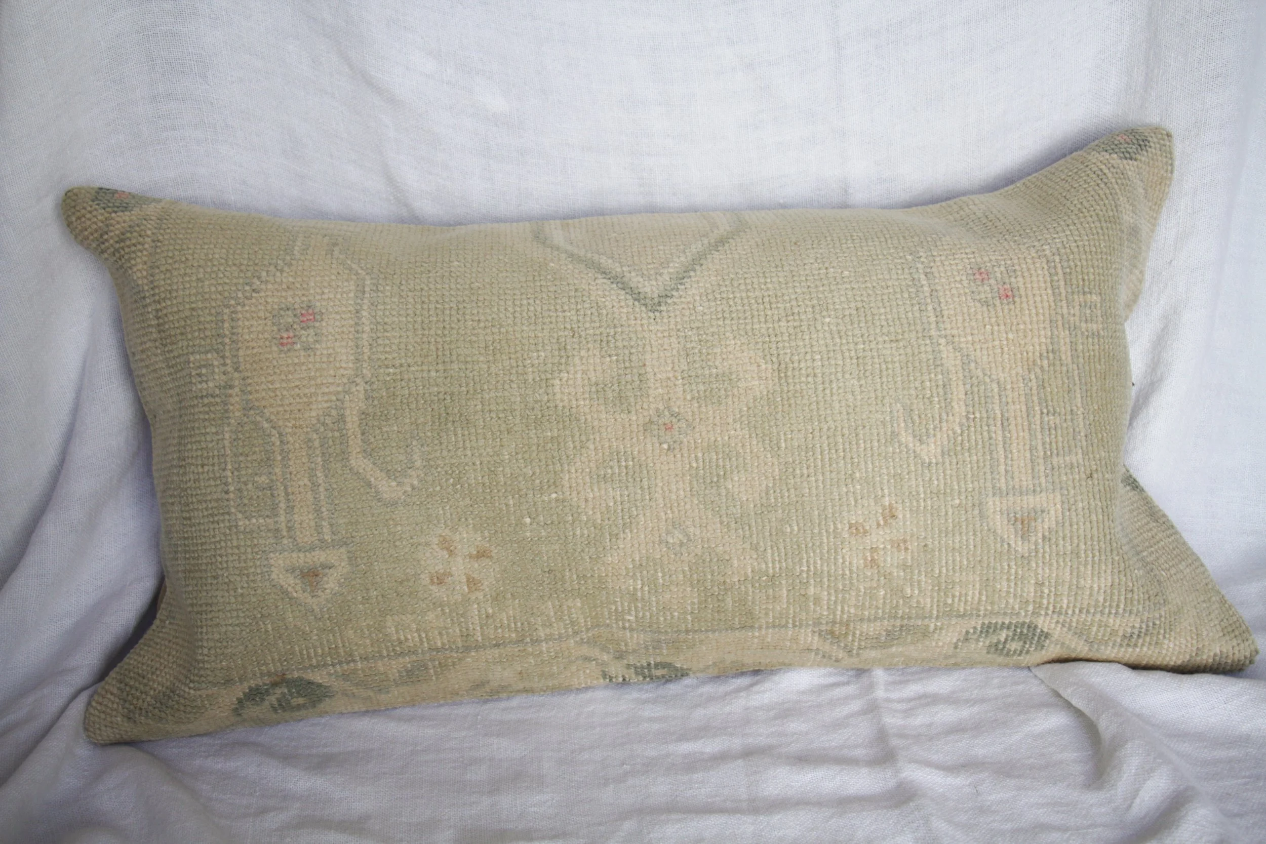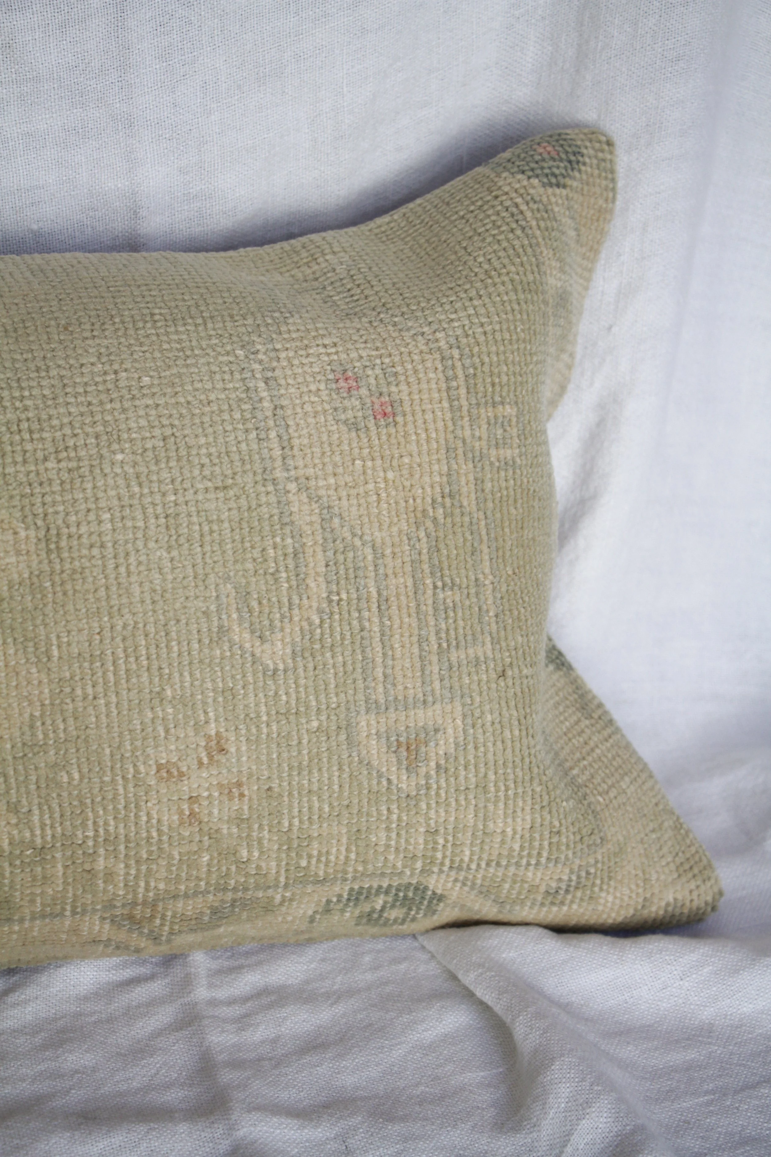 Made from carpet textiles, this pillow features a olive, brown and blush design.